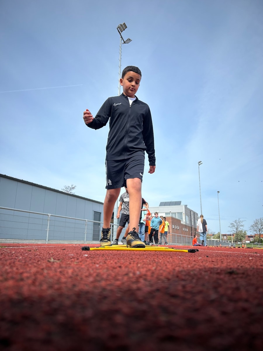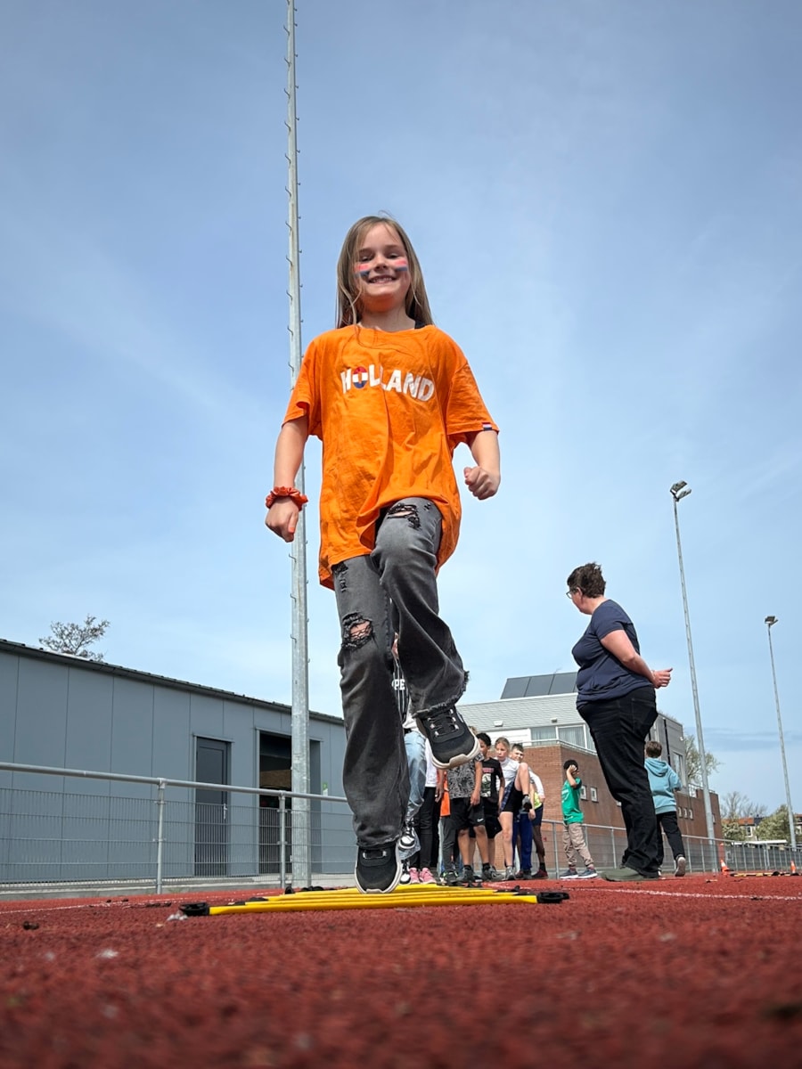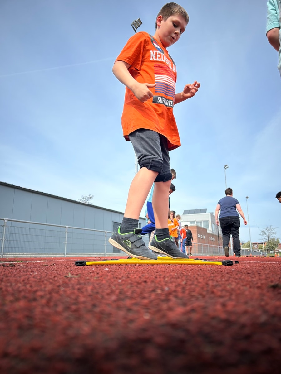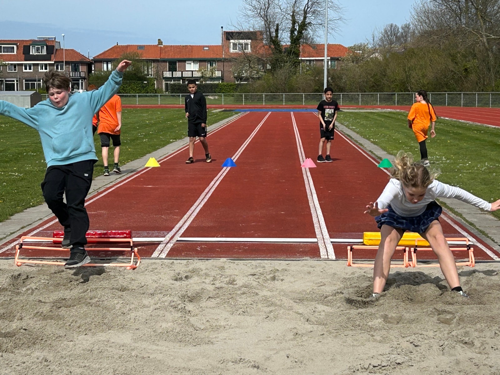 Vandaag stond de tweede les op het programma. Onder leiding van Samantha en haar medetrainer gingen we weer de baan op. We begonnen met warmlopen. Daarna gingen we in twee groepen uiteen: kogelstoten en verspringen. Het was heerlijk weer om lekker te sporten. We sloten de les af met een estafette.
