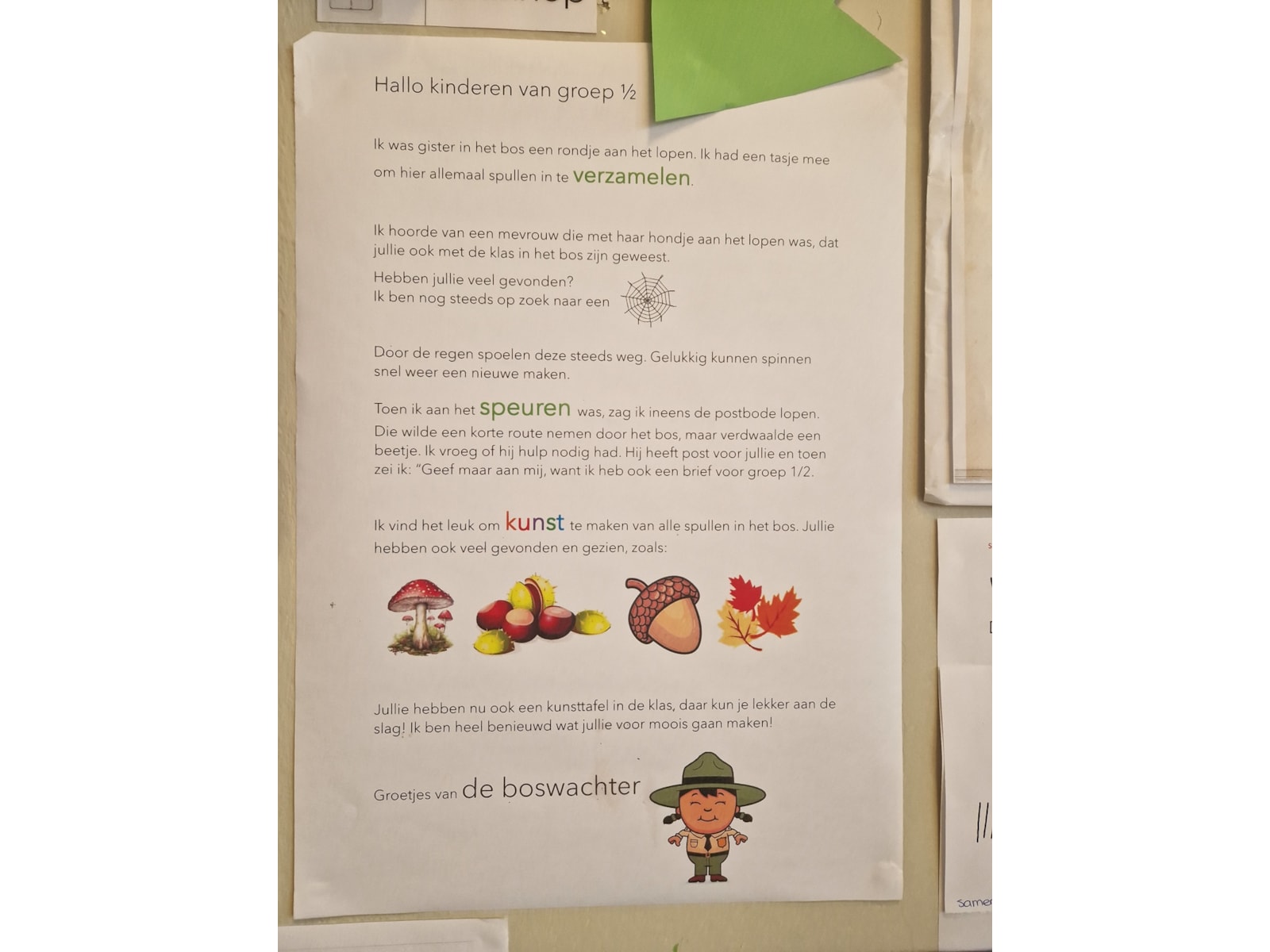 De herfst is aangebroken en dus tijd voor een nieuw thema. Wij gaan speuren en verzamelen. We maken een woordspin over de herfst, we gaan de hoeken aanpassen, we bezoeken het bos en we kijken naar de boswachter. Door spelend en ontdekkend leren worden we wijzer over de herfst.
