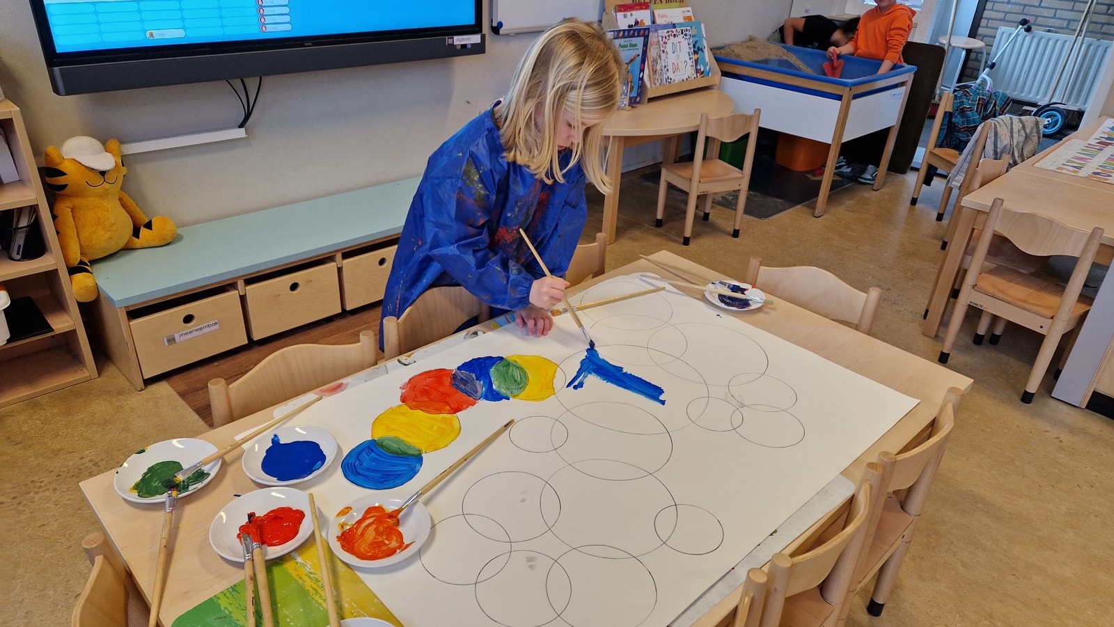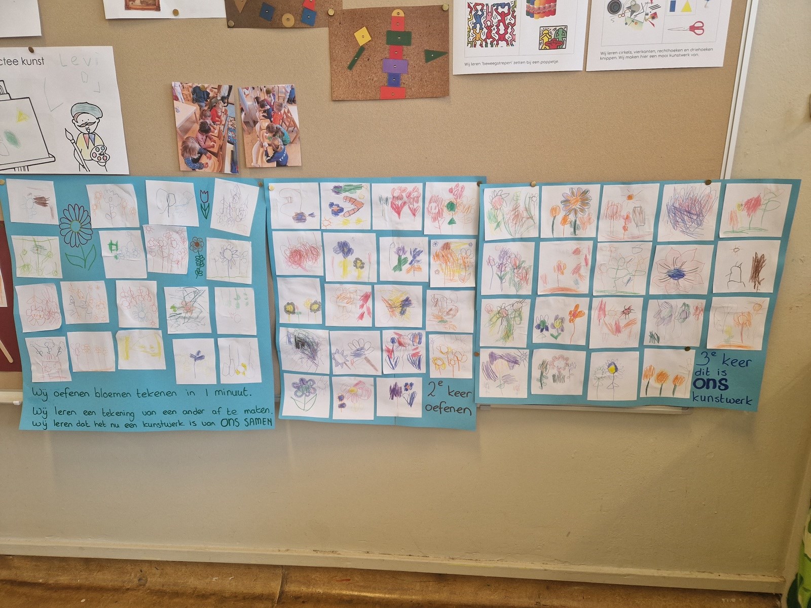 Thema kunst in groep 1/2 In februari begonnen wij met het thema kunst. We leerden over verschillende kunstenaars en maakten kunst voor in ons eigen museum. We bespraken de zonnebloemen van Van Gogh en de waterverf van Monet. We sloten af met een echt museum waar onze ouders, grootouders en andere belangstellenden een bezoek konden brengen. Om beurten zaten we achter de kassa, scheurden kaartjes door en gaven rondleidingen.